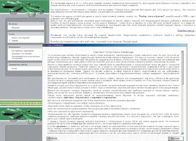 Вначале пользователю предлагается выбрать по методу Хони и Мамфорда наиболее подходящий для себя стиль проведения тестирования, исходя из того, к какому из характерных для четырех условных человеческих типов (деятель, мыслитель, прагматик и теоретик) он относится.