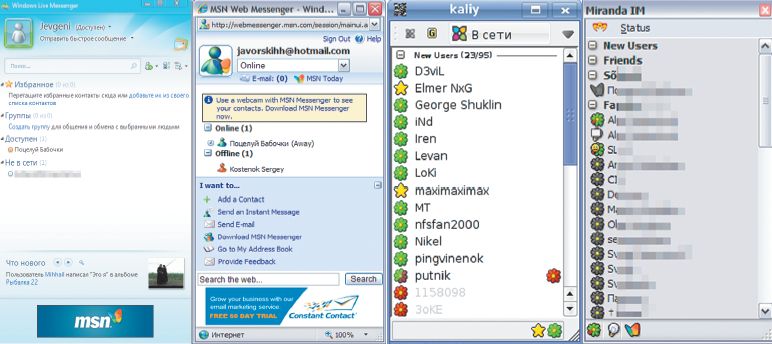 Вы не поверите, но в странах Западной Европы самым популярным интернет-пейджером является вовсе не ICQ и даже не Skype — пальму первенства удерживает Windows Live Messenger. Причина таких пользовательских симпатий легко объяснима: если все ваши потенциальные собеседники тусуются в одной сети, зачем искать альтернативу? Тем более что ранние версии этого продукта (Windows Messenger) входили в базовую поставку операционной системы. В итоге социальная сеть Live, созданная корпорацией Microsoft, живее всех живых, а российские реалии несколько иные.