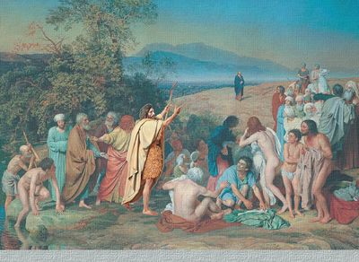Кстати, название «Явление Христа народу» — не авторское. У самого художника картина первоначально называлась «Представление Иоанном Крестителем Спасителя народу», затем — «Появление Мессии», долгие годы ее именовали просто «картиной», и наконец «Явление Мессии». (Тем, кто не прочувствовал нюансов, советую прочитать статью Г. Голдовского «Александр Андреевич Иванов. Юбилейные размышления», приведенную на диске.)