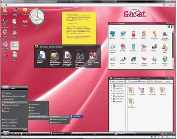 В настоящее время действует примерно два десятка проектов онлайновых «операционок». Подавляющее большинство из них сейчас находятся в стадии разработки или публичного тестирования. Одним из наиболее функциональных представителей семейства считается проект G.ho.st. Его название расшифровывается как Global Hosted Operating SysTem. Для создания сервиса использовалась технология Flash, так что для работы системы понадобится соответствующий плеер версии 9.