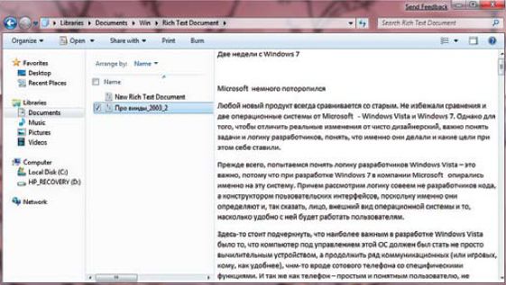 Найдя на панели задач значок Проводника, можно подумать, что Microsoft все-таки сделала шаг назад и предложила работать с файлами так, как это делалось во всех ее операционных системах до Windows Vista. Напомним, что в Vista доступ к файлам в явном виде почти перекрыт: добраться до структуры дисков и папок можно лишь после долгих поисков папки «Компьютер»(ниже -- латиницей). Через Проводник доступны лишь операции с так называемыми документами -- текстовыми файлами, музыкой, видео и проч.