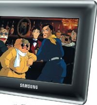 Пластиковая рамка экрана, выполненная по фирменной технологии ТОС (Transparent Opaque Color), состоит из двух слоев: угольно-черной основы и прозрачного, чуть глянцевого верхнего слоя. Задняя сторона также не забыта --пластик там покрыт растительным орнаментом. ЖК-экран сделан матовым, так что при просмотре фотоизображений никаких бликов не возникает. В общем, с внешним видом все в порядке, если не считать логотипа производителя, расположенного не только на тыльной, но и на лицевой стороне. Также было бы неплохо немного увеличить разрешение экрана -- оно составляет 800х480 точек. Если рассматривать снимки с расстояния нескольких метров, этот недостаток дисплея не так уж сильно бросается в глаза, но приближаться, пожалуй, не стоит. А если же кому-то этого мало, то стоит обратить внимание на старшую модель SPF-107H, экран которой обеспечивает разрешение 1024х600 точек.