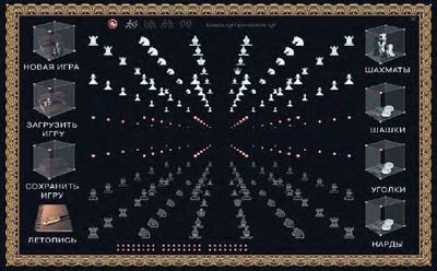 Что касается игрового содержания, то оно здесь куда богаче, нежели в «Спокойных играх», — трехмерное пространство дает о себе знать. Шахматы, шашки, уголки, нарды представляют собой лишь основные группы. Чтобы получить полный список игр, нужно нажать на