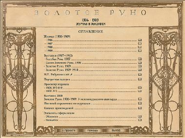 Для продукта «Золотое руно» были выбраны из всех изданных за три года выпусков журнала лишь два номера: строенный № 7 — 9 за 1906 г. (сфокусированный на теме древнерусской живописи) и № 5 за 1907 г. (посвященный первой выставке русских символистов «Голубая роза»). Авторы, преследовавшие наряду с просветительскими и эстетические цели, представили их в виде цифровых копий оригиналов, реализовав уникальную возможность «перелистывания» страниц посредством манипуляций мышью, напоминающих движения, совершаемые при просматривании традиционного издания.