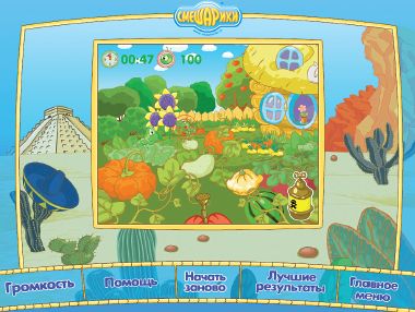 Главный экран открывает доступ к играм, к регулировке уровня громкости, к общей для сборника справочной информации и к статистическому разделу, где накапливаются результаты. Тем, кто приобретет диск сборника, будет приятно обнаружить в нем роскошный бонус, включающий три короткометражных мультфильма про смешариков («Счастьемет», «Самооборона без противника», «Не может быть») и компьютерную поделку, помогающую собрать календарь на текущий год из готовых фрагментов, содержащих изображения смешариков.