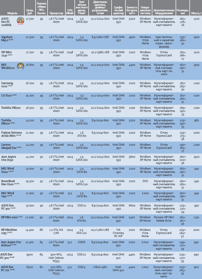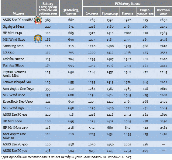 Что же касается наших рекомендаций, то «Выбор редакции» пал на ASUS Eee PC 1008HA, обладающий отличной эргономикой и неплохими техническими характеристиками. «Лучшей покупкой» мы посчитали MSI Wind U120 -- весьма интересный аппарат, вполне заслуживающий внимания потенциальных покупателей.