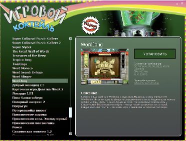 Оболочка сборника позволяет составить первое впечатление о том, что представляет собой каждая из игр. В общем, выбирайте в списке, размещенном в левой части экрана, любую с приглянувшимся названием, и тогда в правой части получите ее краткое описание и копию игрового экрана, что поможет познакомиться с качеством графики и интерфейсом. Если все пришлось вам по душе, нажимайте кнопку «Установить» и запускайте процесс инсталляции.