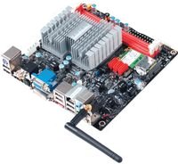 Как известно, эталонный дизайн неттопа на платформе nVidia Ion предусматривает использование системной платы формфактора Pico-ITX, чем и обусловлены столь малые габариты таких устройств. Однако на этот раз мы обратили внимание на плату в более привычном формфакторе mini-ITX. Ее функциональные отличия от референсной платы, ставшей основой для некоторых промышленно выпускаемых неттопов (например, Acer Revo), довольно значительны. Вместо разъема для модуля памяти SO-DIMM на ней распаяны два полноценных гнезда DIMM. Поддерживается память DDR2-667/800, возможна ее работа в двухканальном режиме. Помимо того, присутствует один разъем m-PCI, в рассмотренной конфигурации занятый адаптером Wi-Fi 802.11n. Гнездо для антенны выведено на заднюю панель, правда, оно только одно, хотя адаптер, как и положено устройству стандарта 802.11n, поддерживает подключение двух антенн.