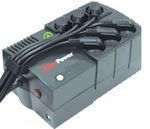 Данное устройство, в общем-то сходно с уже рассмотренным нами ранее CyberPower BR850ELCD (см. «Мир ПК», №2/09, «Бюджетная бесперебойность»). Его преимущество — в большом числе розеток для подключения оборудования: всего установлено шесть, из них три обеспечиваются бесперебойным электроснабжением. Среди особенностей модели— ЖК-индикаторы, отображающие входное и выходное напряжения и уровень заряда аккумуляторной батареи. Этот ИБП, наряду с прочими аппаратами данного изготовителя, снабжен фирменным дополнением в виде устройства для зарядки элементов питания — АА/ААА, подключаемого через специальный USB-разьем.