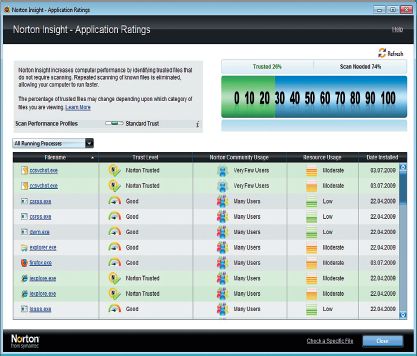 В продуктах Symantec линейки 2010 используется понятие репутации приложений, которая создается на основе данных о характеристиках программ, анонимно передаваемых миллионами участников проекта Norton Community Watch. Основой репутационной оценки приложений становятся сведения об их происхождении, разработчике и другие характеристики. Вредоносные программы, по мнению Symantec, как раз и отличаются от безопасных отсутствием такой информации.