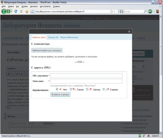 Крупная блог-платформа WordPress использует библиотеку JQuery и другие подобные компоненты для загрузки изображений. Аналогично поступает и «Битрикс», применяя, по-видимому, собственную JavaScript-библиотеку с похожим функционалом. Действительно интересно, что разные группы разработчиков открытых и коммерческих систем задействуют одни и те же приемы, уже отточенные при разработке настольных приложений.