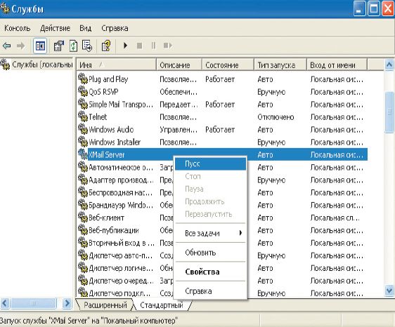 Последний штрих. Назначьте разрешения для доступа к каталогу D:xmail-1.25 и его содержимому для пользователей System и членов группы администраторов. Запустите службу XMail Server (рис. 3).