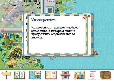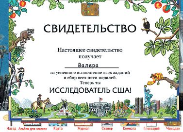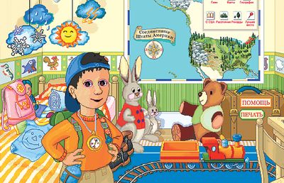 Все начинается с комнаты Джо, где на стене висит интерактивная карта США. Именно она является основным инструментом для изучения страны как во время поисков Джо в ходе игры, так и при работе со справочником в других режимах. Использовать карту очень легко — достаточно выбрать на ней нужный регион и с помощью мыши изучить покрывающие ее изображения. Как только курсор приобретет вид кисти руки с оттопыренным указательным пальцем, можно смело нажимать на левую кнопку, чтобы в отдельном всплывшем окне посмотреть иллюстрацию и прослушать (или прочитать) краткий текст с описанием выбранной достопримечательности или какого-либо места. Вообще-то так же построена и работа со всей программой.