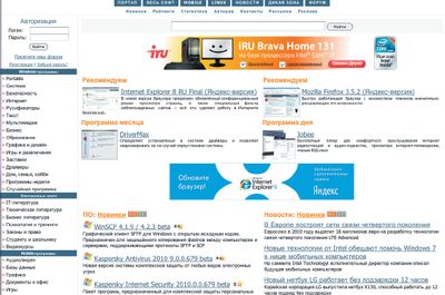 Интерфейс данного проекта больше напоминает не портал, а новостной ресурс — и стартовая страница, и каждый раздел в качестве основного элемента предлагают ленту новинок. Количество рекламы умеренное. Перечень разделов каталога (их всего 16) вынесен на боковую панель. Как более-менее оригинальные стоит отметить «Веб-разработку», «Безопасность и приватность», «Обучение и образование». Для каждого раздела предлагается собственная RSS-лента. Кстати, на Download.ru довольно много публикаций — новостей и обзоров ПО.