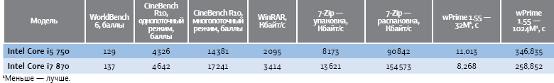 По результатам тестирования можно сделать вывод, что процессор Core i7 870 значительно производительнее своего младшего брата. В отдельных тестах он демонстрирует показатели в 2 и более раз лучшие, но далеко не во всех. Например, в однопоточном тесте CineBench процессоры продемонстрировали результаты, соотносящиеся почти в той же пропорции, что и их тактовые частоты. В общем, технология Hyper Threading работает, а значит, 2,5-кратная разница в цене этих процессоров оправданна. Однако по-прежнему довольно часто встречается ПО, не функционирующее в многопоточном режиме. Следовательно, при выборе процессора стоит учесть это, а также продумать, для решения каких задач он будет использоваться.