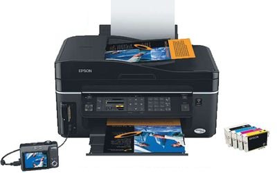 В отличие от фотомодели TX700, данное устройство оснащено привычным верхним лотком для бумаги — для офиса это то, что нужно. Встроенный сканер аналогичен имеющемуся у TX700, однако здесь крышка немного приподнимается да и массу имеет гораздо большую.