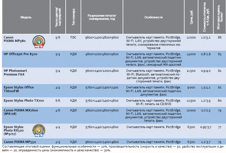 Выбирая среди представленных устройств, нам бы хотелось остановиться на модели Canon PIXMA MP980, имеющей богатое функциональное наполнение и обеспечивающей отличное качество печати. На наш взгляд, она может стать идеальным домашним устройством, за что и получила значок «Выбор редакции».