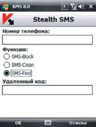 средствами функции Stealth SMS на другом оборудовании с установленным Kaspersky Mobile Security;