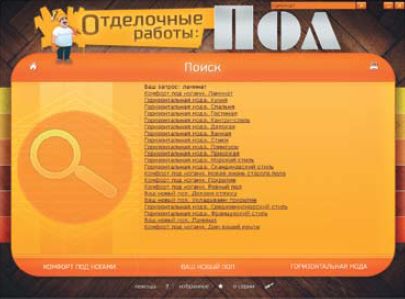 Три раздела данного диска — «Комфорт под ногами», «Ваш новый пол», «Горизонтальная мода» — познакомят вас как со стилями (английский, этнический, кантри-стиль), так и с тем, как выбрать, а главное, как уложить нужное покрытие.