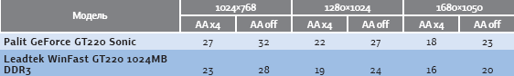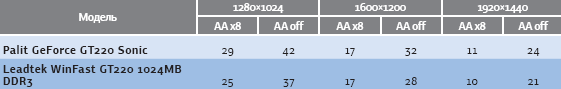 По результатам производительности в играх GeForce GT220 наиболее близка к видеоадаптерам на базе ГП AMD Radeon HD 4670, который стоит дороже, но и производительность имеет более высокую (см. «Мир ПК», №11/09, с.16). Несмотря на меньший объем видеопамяти, устройство компании Palit превосходит по производительности видеокарту, изготовленную Leadtek, как в играх, так и при аппаратном транскодировании видео благодаря повышенным частотам работы ГП и памяти. При этом данная видеокарта стоит дешевле своего конкурента.