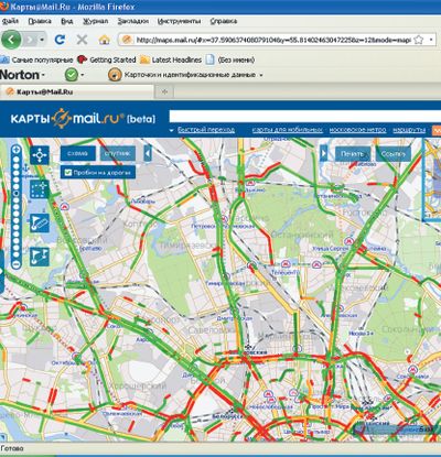 Совсем недавно компания выпустила обновленную версию проекта, ключевым новшеством которого стала возможность видеть пробки и выбирать маршрут объезда самостоятельно или с помощью соответствующей функции. Сервис доступен и для веб-приложений, и для мобильных устройств (для Java-платформ карты интегрированы в Агент@Mail.Ru, также поддерживаются платформы Windows Mobile и Symbian). Приятно отметить, что функции «Измерить расстояние» и «Поиск маршрута» (в том числе с учетом пробок) оперируют такими понятными величинами, как скорость движения, расстояние и время в пути. Анализ движения автотранспорта не ограничивается чертой города, он распространяется на область, а также охватывает кроме Москвы и С.-Петербурга еще 11 крупных российских регионов. Функция прокладки маршрута универсальна: не имеет значения, проходит ли путь из города в область или из России за рубеж. В мобильном приложении доступен режим с трехмерными графическими объектами, а интерфейс ориентирован под управление пальцами. Другим дополнением проекта стала карта метро Москвы с удобным выбором смежных станций.