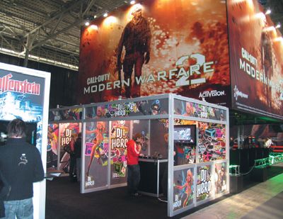 Любители «шутеров» смогли насладиться предсмертными мучениями гитлеровцев, пачками убиваемых в возрожденном Wolfenstein. Еще один бренд, стараниями компании получивший второе дыхание, — Majesty 2. The Fantasy Kingdom Sim привлекла внимание поклонников стратегий в реальном времени. А тем, кто и дня не может прожить без знаменитого лукасовского светового меча, были предложены сразу две игры: Star Wars The Clone Wars: Republic Heroes и Star Wars The Force Unleashed: Ultimate Sith Edition. Фанатам же «безбашенного» музицирования предназначалась пара продуктов компании Activision — Band Hero и DJ Hero. Причем практически все уже выпущенные игры можно было тут же на выставке приобрести в магазинчике компании, разместившемся на одном из ее стендов.