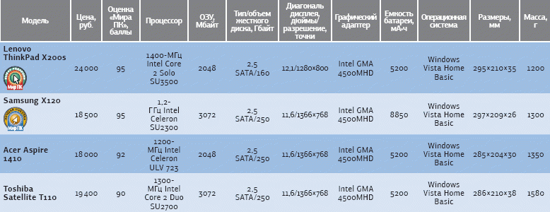 Что же касается наших традиционных предпочтений, то «Выбор редакции» пал на Lenovo ThinkPad X200s, тогда как «Лучшей покупкой» мы посчитали Samsung X120 — несмотря на ряд недостатков, эта модель сочетает в себе неплохую функциональность при относительно умеренной цене.