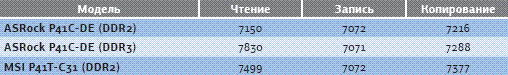 То, что результаты в тестах производительности систем на основе двух системных плат на одном наборе системной логики различаются на уровне погрешности измерений — нормальное явление, в противном случае следовало бы искать в одном из устройств производственный изъян. Удивительнее то, что пропускная способность ОЗУ при использовании более быстрой памяти DDR3 возросла незначительно. Это можно объяснить особенностями контроллера памяти, а также таймингами. Впрочем, в настоящее время ОЗУ типа DDR2-1066 и DDR3-1333 почти сравнялись в цене.