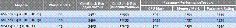 Результаты тестов производительности системных плат на чипсете Intel G41 Express, баллы