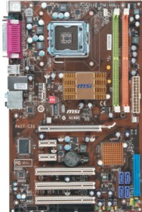 Системная плата компании MSI, в отличие от устройства ASRock, поддерживает только ОЗУ с интерфейсом DDR2, причем на ней имеется всего два разъема DIMM. В остальном же эти устройства похожи, правда, у MSI отсутствуют выходы S/PDIF на задней панели, но зато можно подключить коаксиальное гнездо к разъему на плате. Еще одно различие — конфигурация разъемов расширения: на плате MSI имеются три разъема PCI и два PCI Express x1, а у ASRock — наоборот. На MSI при установке «двухэтажной» видеокарты один из слотов PCI Express x1 будет закрыт, а у ASRock этот разъем предусмотрительно находится выше 16-линейного.