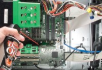 Первым делом выключите питание и отсоедините все кабели кроме кабеля питания. Прикоснитесь рукой к металлическому элементу корпуса — например, к заглушке отверстия, предназначенного для размещения платы PCI, — и отсоедините кабель питания. Таким образом вы снимете с себя статический заряд, который может повредить внутренние компоненты компьютера. Наденьте перчатки и продолжите свою работу в комнате, где нет ковров.