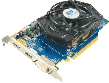 Плата весьма компактная, не возникнет проблем при ее установке даже в очень тесные системные блоки, за исключением «низкопрофильных» корпусов НТРС. Максимальное энергопотребление видеокарты — 61 Вт, так что на ней даже нет гнезд для подключения БП — хватает питания, подаваемого через разъем PCI Express. На плате есть два разъема CrossFire, т.е. можно объединить в массив CrossFireX до трех видеокарт. На задней панели распаяны выходы DVI, HDMI и DisplayPort. Как и более старшие модели, новая видеокарта поддерживает технологию Eyefinity.