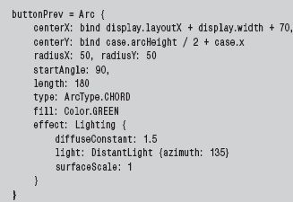 Переменные centerX и centerY вам уже известны, а вот параметр radius здесь превращается в два разных радиуса по ширине и высоте дуги соответственно — radiusX и radiusY. Значение startAngle задает начальный угол дуги, а length — длину арки в градусах. Переменная type содержит тип арки (в JavaFX их три — CHORD, ROUND и OPEN).