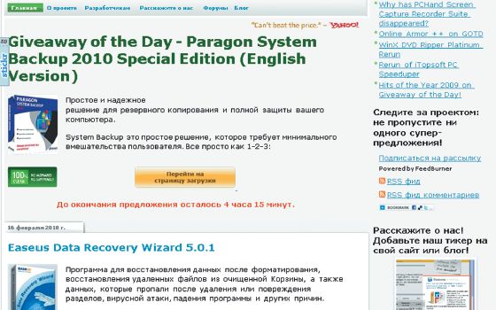Англоязычным пользователям уже полюбился данный проект, который они называют GOTD (GiveawayOfTheDay.com), по аналогии с тем, как мы называем БОРом любимый многими Bash.Org.Ru. Кстати, россияне могут выбрать полностью русскоязычную версию сайта, доступную по адресу ru.giveawayoftheday.com.