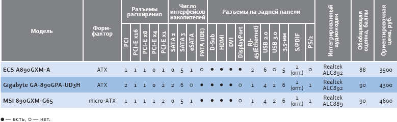 Из трех рассмотренных плат наиболее совершенными являются изделия компаний Gigabyte и MSI. Учитывая, что у них разный формфактор, выбор между ними можно осуществлять на основе этого критерия. Плата ECS A890GXM-A подойдет тем, кто хотел бы собрать систему на современном чипсете, но не нуждается в интерфейсе USB 3.0 и не планирует серьезно заниматься разгоном. Качество исполнения платы ECS для устройства своей ценовой категории вполне приличное, так что, если вас не пугают упомянутые ограничения, вполне разумно будет купить ее.