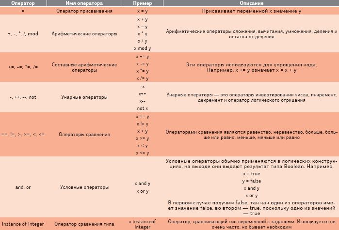 Операторы, используемые в языке JavaFX, знакомы тем, кто владеет другими языками программирования.