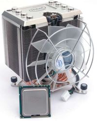 Радиатор башенной конструкции, снабженный четырьмя двунаправленными медными тепловыми трубками, имеет медное основание. Этот кулер крепится к системной плате посредством пластмассовой пластины и четырех подпружиненных винтов, а не стандартными защелками, закрепляющимися в отверстиях платы, как обычно.