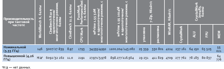 Рабочая частота памяти DDR3: 1333 МГц, тайминги: 9-9-9-24, режим работы контроллера: трехканальный.