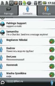 Рассмотрим еще одного представителя мультипротокольного племени, знакомого с протоколами ICQ, MSN, Gadu-Gadu, Yahoo!, Jabber, AIM, Google Talk и Facebook. Вот только для работы с данным приложением нужно зарегистрировать учетную запись на сайте разработчиков, предлагающих общение в своей социальной сети. Palringo позволяет обмениваться не только текстовыми, но и голосовыми сообщениями. Респонденту можно отправить изображение, причем, по словам разработчиков, 1 Мбайт мобильного трафика эквивалентен 100 тыс. слов текста, 32 графическим файлам или 15 минутам голосового общения. Настройки сводятся к включению оповещения звуком, вибрацией или миганием экрана. Что же, забавный аскетизм…