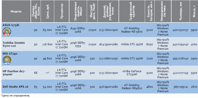 Что же касается наших предпочтений, то «Лучшей покупкой» мы посчитали аппарат MSI GT740, имеющий отличные технические характеристики при относительно демократичной цене, тогда как «Выбором редакции» стала модель ASUS G73Jh. Все-таки, несмотря на довольно высокую цену, этот ноутбук оказался наиболее привлекательным устройством, обладающим неплохой производительностью и приятным дизайном.