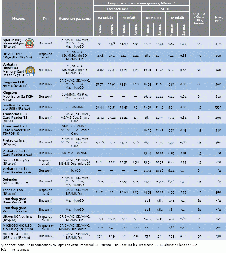 Не так давно, этой весной (см. «Мир ПК», № 4 / 10), мы уже тестировали считыватели карт памяти с интерфейсом USB, предназначенные как для обладателей мобильных компьютеров, так и для владельцев стационарных. На сей раз мы решили испытать исключительно внешние карт-ридеры, обладающие по сравнению с встраиваемыми рядом преимуществ, главные из которых — мобильность и портативность.