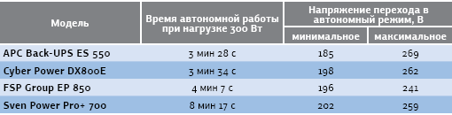 Кстати, стоит учесть, что современные качественные блоки питания компьютеров не боятся значительных падений напряжения. Известны случаи, когда блок питания продолжал исполнять свою функцию даже при подаче на него напряжения в 50 В. У нас нет достоверных сведений о продолжительности работы в таком режиме, однако полагаем, что если падения напряжения носят кратковременный характер, можно положиться на качественный блок питания и обойтись без интерактивного ИБП. Когда же пользователь приобретает удачный блок питания и при этом напряжение в сети постоянно держится ниже 150 В, то покупка дешевого ИБП может сыграть злую шутку. Ведь зачастую подобные устройства переходят на работу от батареи уже при 180—190 В. Значит, без ИБП компьютер будет работать непрерывно, а в случае с подключенным ИБП перестанет функционировать, когда сядет батарея. При столь серьезных проблемах с электросетью необходимо очень тщательно подойти к выбору ИБП однако, в данной статье все-таки рассматриваются более простые устройства, задача которых — дать системе корректно завершить работу, если отключат электропитание. Для тестирования продолжительности работы мы использовали 300‑Вт активную нагрузку, составленную из трех 100‑Вт ламп накаливания. Также в ходе исследования были сняты осциллограммы выходного напряжения. Впрочем, они оказались малоинформативными: формы сигналов практически всех устройств были похожи как две капли воды, но все-же нашелся один ИБП, попытавшийся обойти нашу методику. Однако осциллограмма помогла вывести его на чистую воду, о чем ниже. Само собой, перед проведением тестов мы до предела зарядили аккумуляторы, на сутки подключив образцы в сеть.