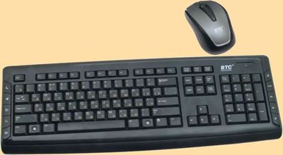 Компания BTC не первый год поставляет свои беспроводные комплекты на российский рынок. Очередное ее творение имеет строгий вид. Черный матовый пластик клавиатуры лишь немного разбавлен глянцевыми вставками, на которых расположились дополнительные органы управления, позволяющие использовать медиапроигрыватели, а также запускать веб-браузеры и служебные программы операционной системы, причем без установки каких-либо дополнительных драйверов. Она сделана низкопрофильной, и в самой толстой части ее высота не превышает 2 см. Пластик клавиш имеет шершавую поверхность и приятен на ощупь. Ход их короткий — тактильные ощущения от нажатий не раздражают. К недостаткам клавиатуры стоит отнести периодическое пропадание символов при быстром наборе текста, причем замена элементов питания не решила эту проблему. Как выяснилось, преградой между ней и приемником стал тестовый монитор NEC MultiSync PA241W. Неплохо было бы предусмотреть подставку под запястья, но, увы, этим придется заняться пользователю. Стандартная раскладка клавиатуры никаких неожиданностей для покупателя не таит.