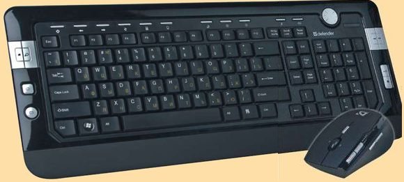 Беспроводной набор компании Defender явно рассчитан на серьезную аудиторию, чем и объясняется его строгое цветовое исполнение. Клавиши клавиатуры расположены вполне традиционно — заново осваивать раскладку не придется. Нажимаются они плавно, хотя и присутствует определенная «пластмассовость». Большие выделенные кнопки дополнительных функций, расположенные вдоль боковых сторон основной клавиатуры, также удобны в обращении. Они удачно вписываются в дизайн. Особо стоит отметить мышь, входящую в комплект.