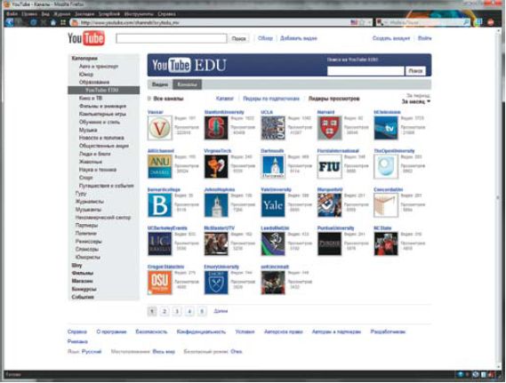 Начнем со специализированного образовательного проекта всем известного видеохостинга YouTube. Здесь представлены не только ролики научно-популярного плана, но и многочисленные «полезные советы», позволяющие решать несложные практические задачи или просто весело провести время. Если же вы пришли на сайт именно с образовательными целями, то обратите внимание на раздел «Каналы», содержащий коллекции онлайнового видео различных образовательных учреждений. Среди участников проекта — почти две сотни вполне солидных учебных заведений. Их перечень приведен в алфавитном каталоге проекта. Среди лидеров по количеству видеофайлов и подписчиков — Массачусетский технологический институт (MIT) и Стэнфордский университет США. В их разделах — по нескольку тысяч роликов, а количество подписчиков, в свою очередь, достигает уже десятков тысяч. Радует, что в список YouTube EDU входят не только именитые зарубежные учебные заведения, но и МГУ, МГИМО и МГППУ.