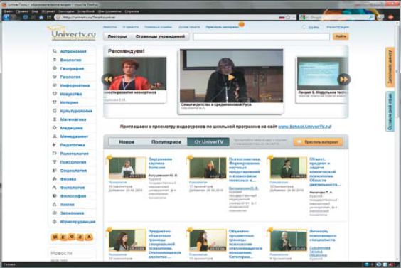Проект UniverTV занимает особое место в данном обзоре. Он четко ориентирован на образование, причем на российское. Это решение среди рассматриваемых здесь, пожалуй, наиболее близко по своей идее к педагогической концепции открытого образования.