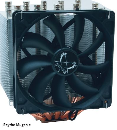 Восточная тема явно преобладает в названиях моделей фирмы Scythe — в переводе с японского Mugen означает «бесконечность». Конструкция охладителя весьма привычная — башенного типа радиатор, оснащенный низкопрофильным 11,5‑см вентилятором с широкими лопастями.