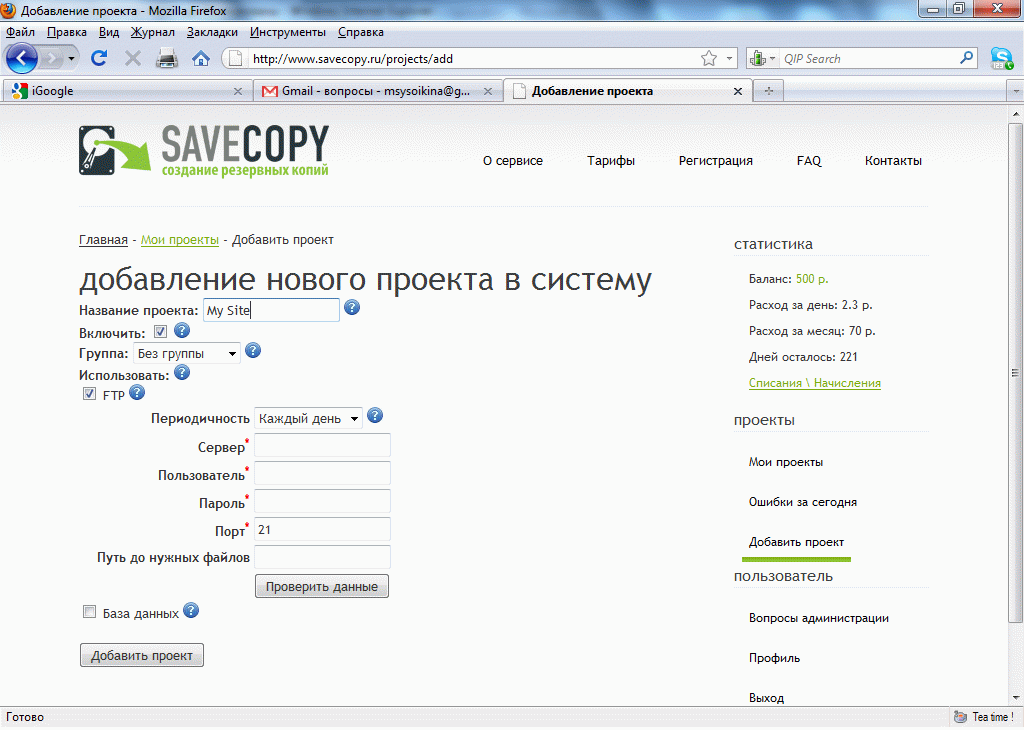 Если администратор не озаботился регулярным созданием резервных копий, потери могут быть непоправимы. Для того чтобы облегчить жизнь владельцам интернет-ресурсов, и был создан сервис SaveCopy. С его помощью можно регулярно делать резервные копии сайта и базы данных и надежно хранить их не на домашнем компьютере и не на сервере провайдера, а на нескольких серверах в удаленных дата-центрах. При этом процесс регулярного резервного копирования полностью автоматизирован, владельцу сайта нужно только указать данные для доступа к файлам сайта и базе данных и определить периодичность создания копий.