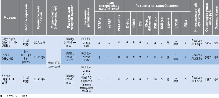 Несомненным достоинством Gigabyte GA-H55N-USB 3, наряду с усиленным питанием портов USB, является наличие контроллера USB 3.0. А поскольку она при этом еще и самая дешевая, то мы рекомендуем покупать ее всем, кто хочет собрать компактный настольный компьютер или медиацентр, если нет причин обратить внимание на остальные устройства. Системная плата производства Intel хороша поддержкой RAID. Это устройство подойдет тем, кто хочет собрать домашний сервер для хранения личной информации, загрузки torrents и решения других подобных задач. «Фишкой» системной платы Zotac является встроенный модуль Wi-Fi, хотя, как уже было отмечено выше, будь она основана на чипсете Intel H57 Express, то оказалась бы, вероятно, лучшей.