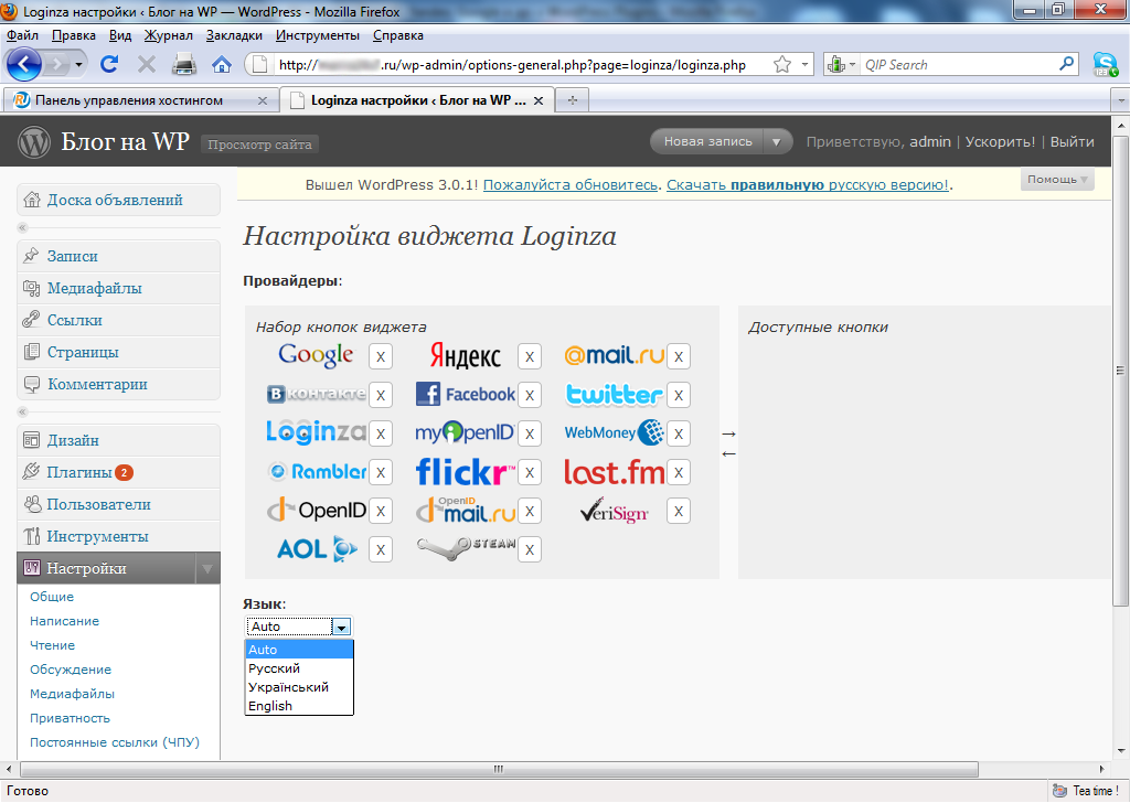 Для веб-разработчиков Loginza — это виджет, написанный на JavaScript, который легко вставить на любую страницу сайта. Для этого потребуется добавить несколько строк в код страницы. Разумеется, виджет Loginza можно настроить так, чтобы можно было отображать лишь кнопки некоторых провайдеров учетных записей, а также выбрать язык (на момент написания статьи были доступны только русский, украинский и английский). Имеются и готовые плагины Loginza для таких популярных платформ, как WordPress, Drupal, Joomla и phpBB.